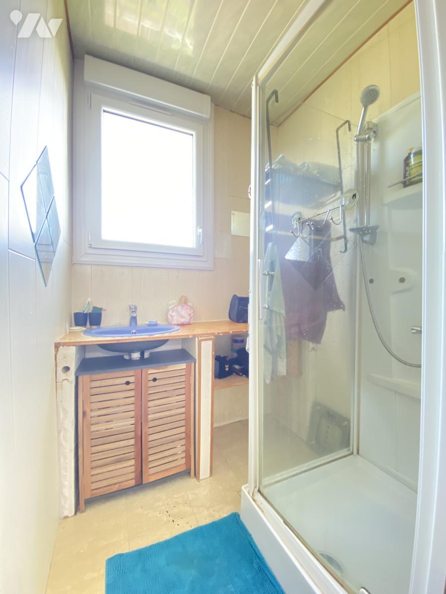 - Rez-de-chaussée : entrée, une chambre, une cuisine/salle à manger/salon, une salle de douches et un espace buanderie.
