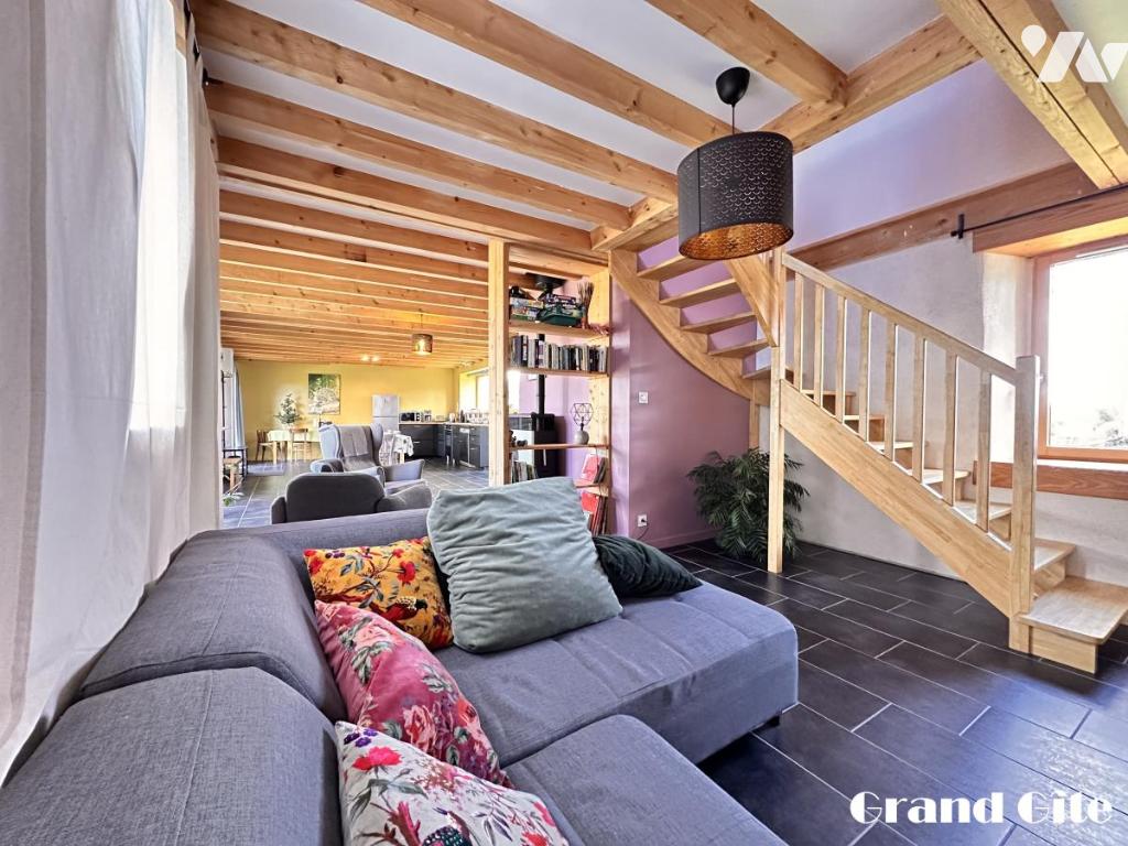 o RDC : salon/séjour avec poêle à granulés et une cuisine.